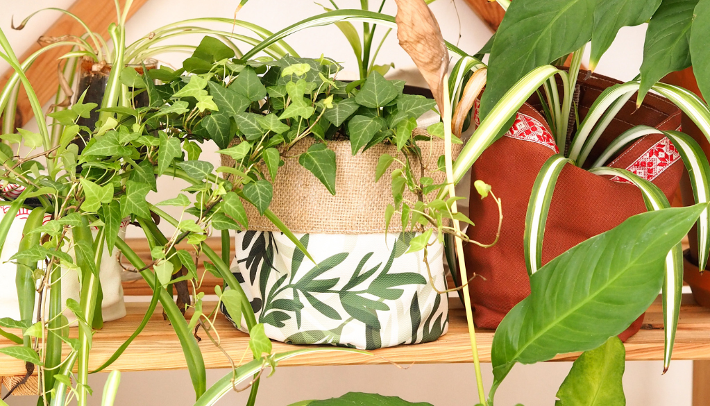 Velké květináče jsou ušity z juty a voděodolného polyesteru. Obal není vodotěsný, musíte do něj tedy vložit květináč nebo misku, která nepropustí vodu.