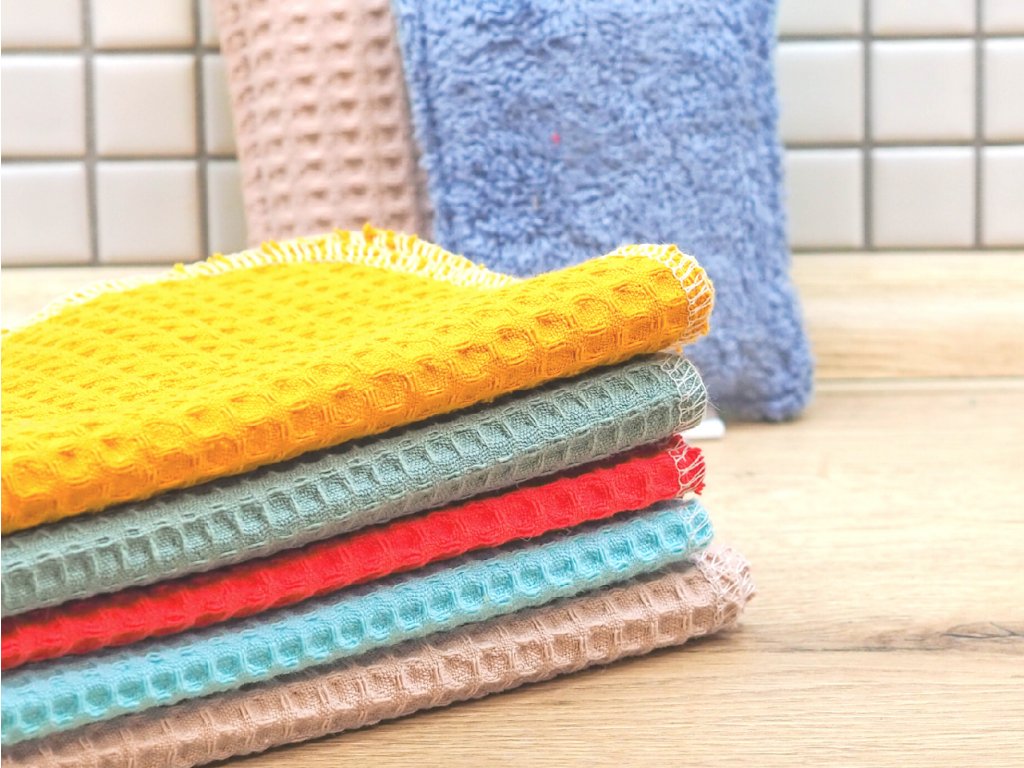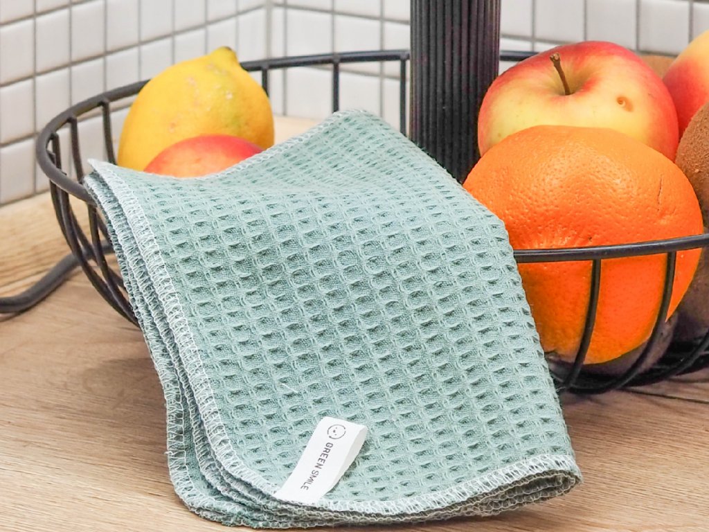 Vaflové zelené hadříky ze 100% bavlny.