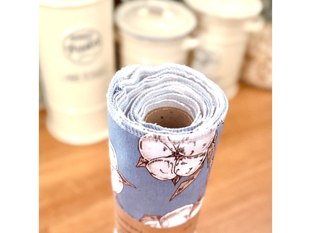 Bavlněné utěrky namotané na papírové roli jsou praktickými pomocníky do každé kuchyně. Jejich použití je opravdu všestranné. Poslouží jako náhrada papírových ubrousků na rozlitý nápoj nebo čištění linky, u kuchyňského dřezu jako eko hadřík nebo utěrka na nádobí.