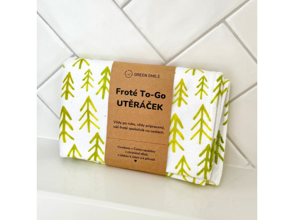 Malý cestovní ručníček se zelenými stromky.