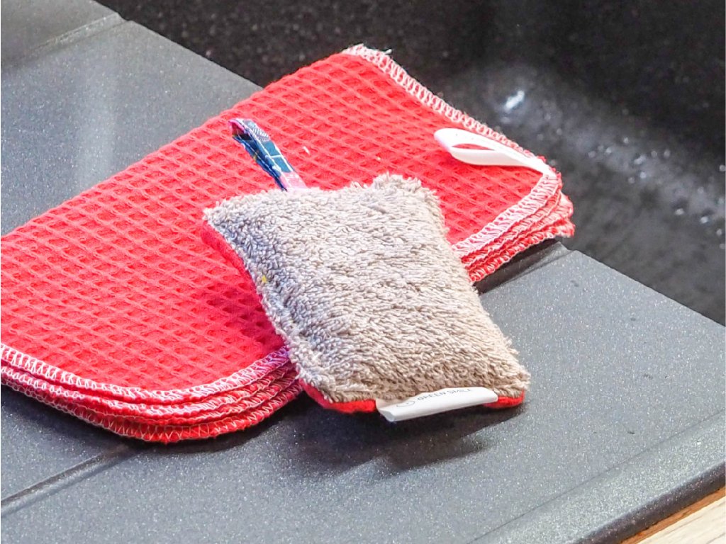 Tato houbička je z jedné strany potažena jemným bio bambusovým froté, čímž je hebká na dotek, příjemně se drží v ruce, ale zároveň dokáže umýt i drsnější povrchy jako například pánve. Dolaďte si k houbičce i červené vaflové hadříky. Celý set naleznete ve zvýhodněné ceně ZDE.