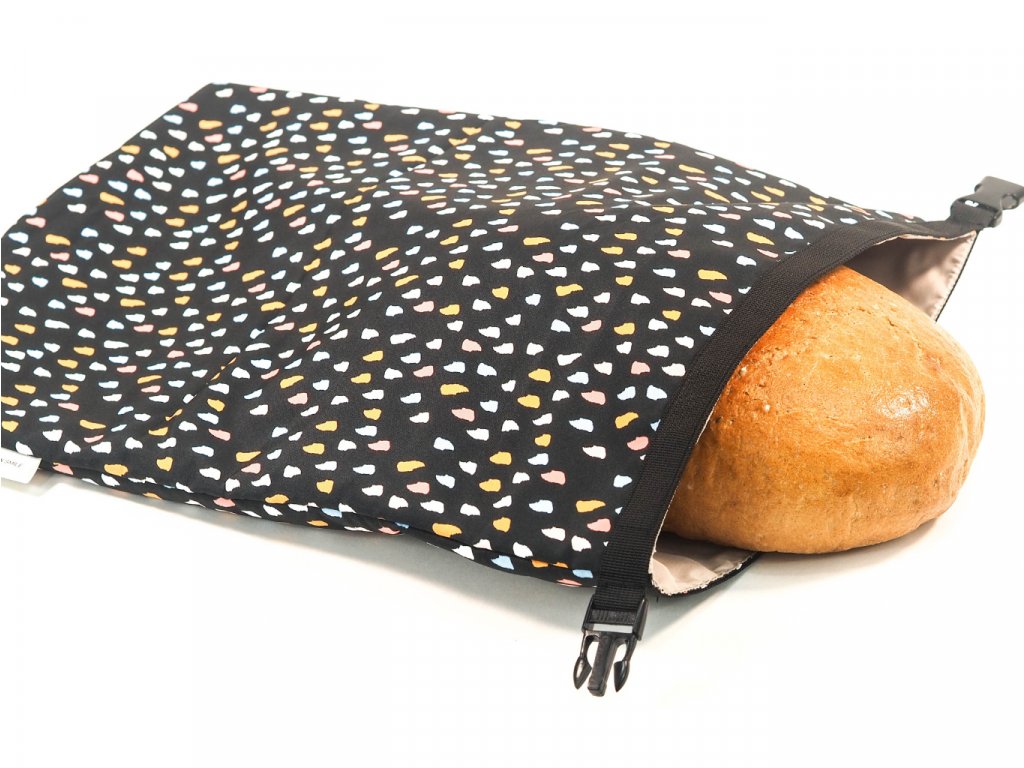 Pytlík na chleba s membránou s černobarevným potiskem.