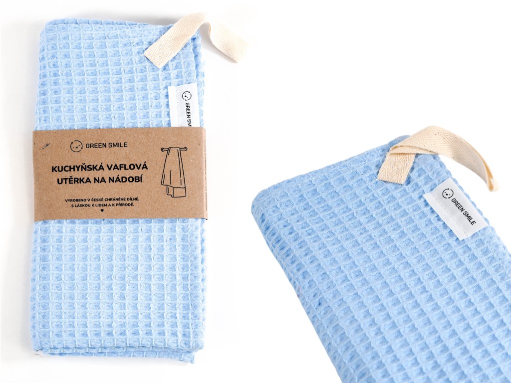 100% bavlněné utěrky na nádobí jsou praktickým doplňkem do každé moderní domácnosti. Vaflová vazba v modrém provedení vypadá navíc velmi trendy a pěkně osvěží vzhled celé kuchyně. Kombinace bavlny s vaflovým vzorem zaručuje vysokou savost.