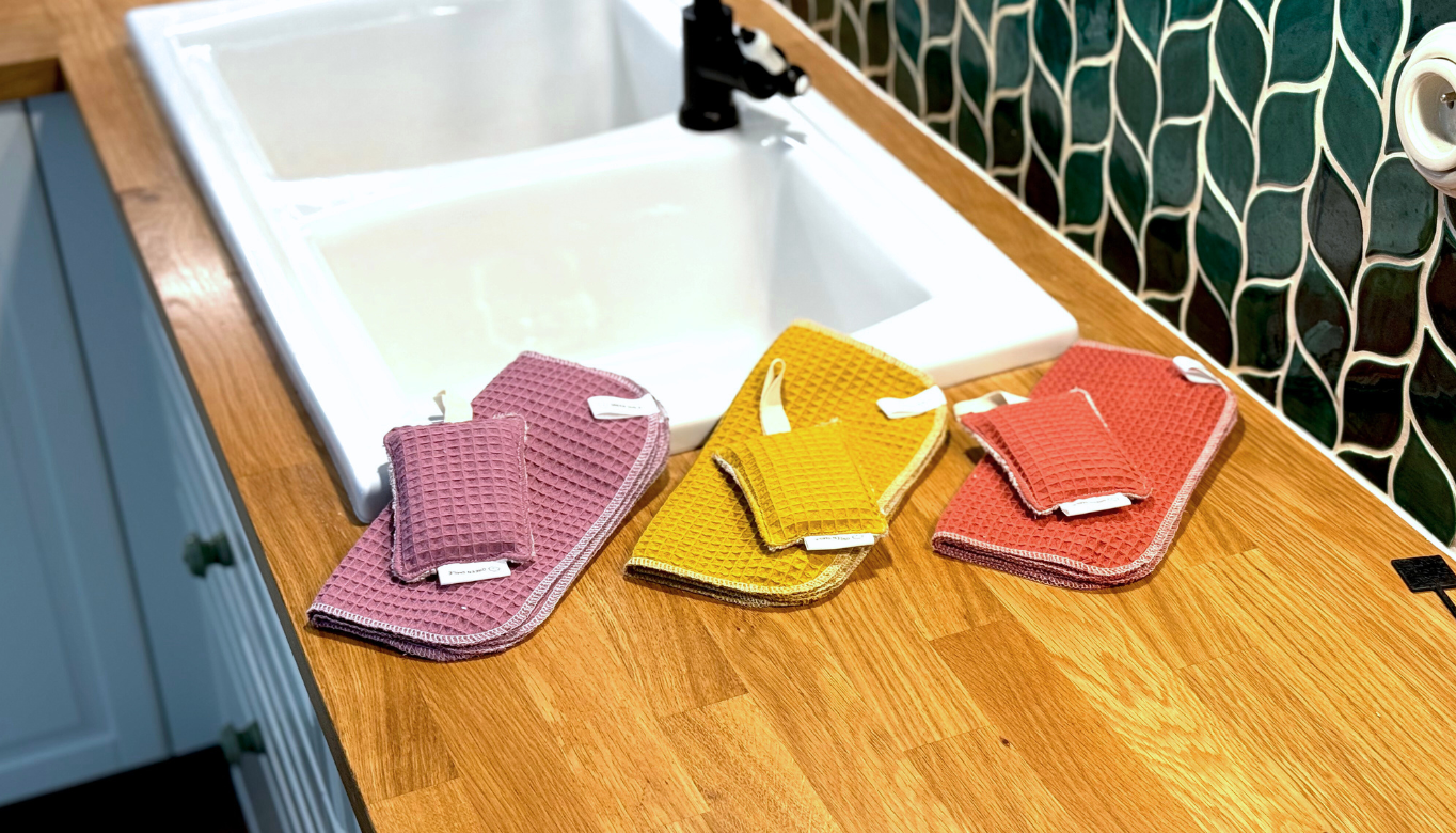 Nedávno jsme do nabídky zařadili nové designové sady s jemnými vzory, které jsou nejen vizuálně atraktivní, ale zároveň velmi praktické. V každé sadě najdete utěrku na nádobí, pratelnou houbičku a dvouvrstvé hadříky ušité z froté a vaflové látky. Tito textilní pomocníci najdou využití při každodenním chodu kuchyně – od utírání pracovní desky až po mytí nádobí. Díky kvalitním materiálům jsou savé, příjemné na dotek a jejich výhodou je, že je můžete opakovaně prát a používat po mnoho měsíců.
