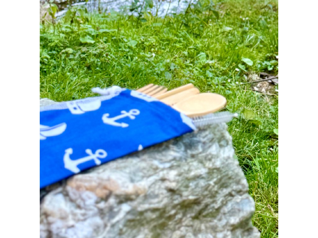 Obal můžete zakoupit samostatně, nebo rovnou v praktickém setu s bambusovým příborem, který obsahuje lžičku, vidličku, nožík, bambusovou brčko a kartáček na jeho čištění. Bambusový příbor je lehký, příjemný na používání a můžete ho nosit s sebou kamkoli. Je to skvělá alternativa k jednorázovým plastovým příborům, a navíc vám vydrží roky.