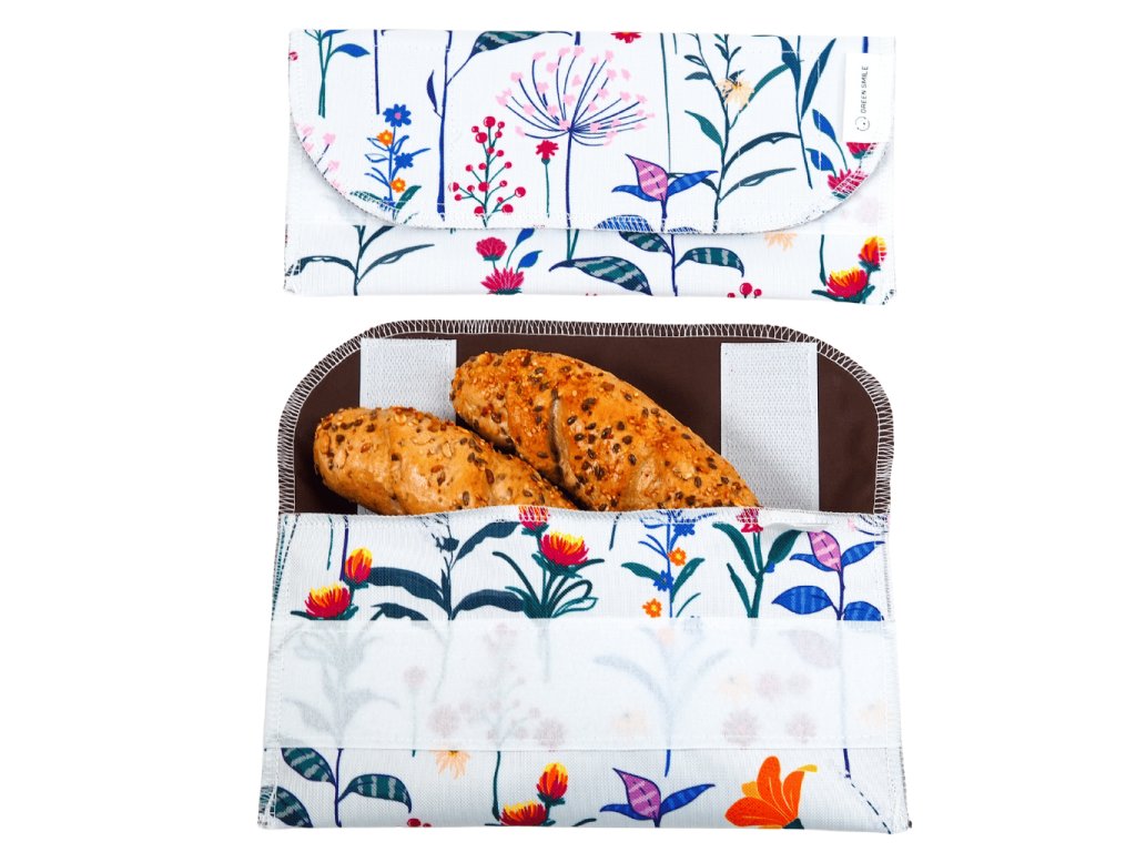 Tento květinový design můžete sladit s dalšími produkty se stejným potiskem – rolovacím vakem na svačinu, obalem na housku a svačinovým ubrouskem. 📌 Zvolte ekologické balení a vyrazte na cesty s udržitelnými doplňky! 🌿♻️