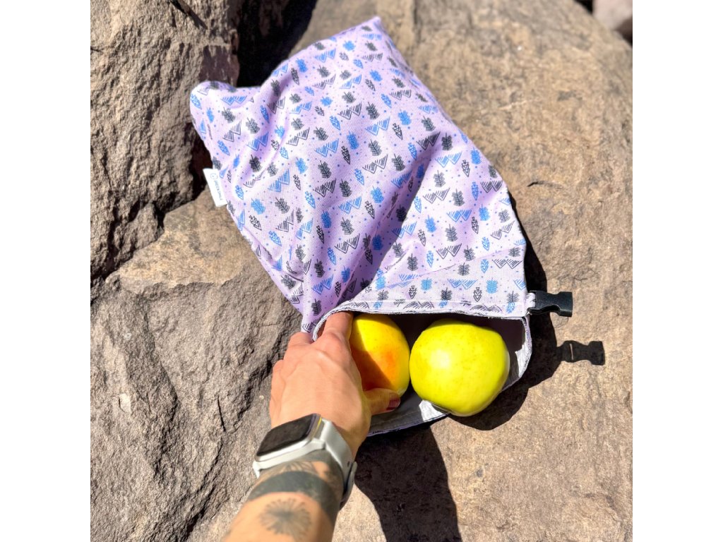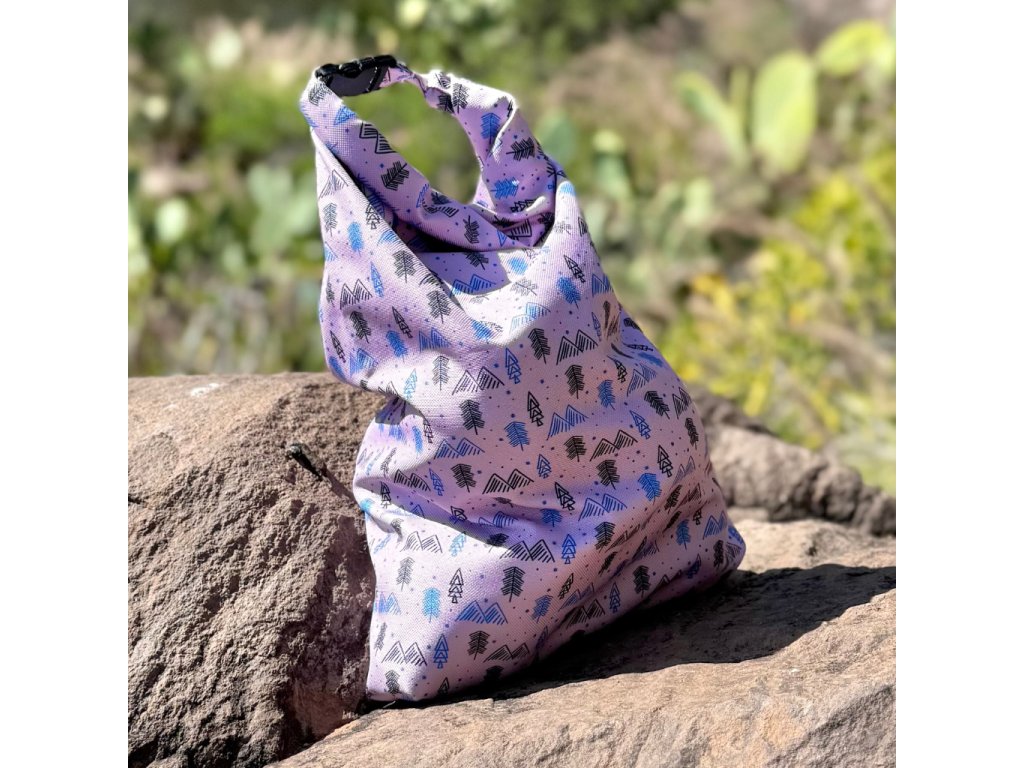 Rolovací pytlík na svačinu s fialovými horami.