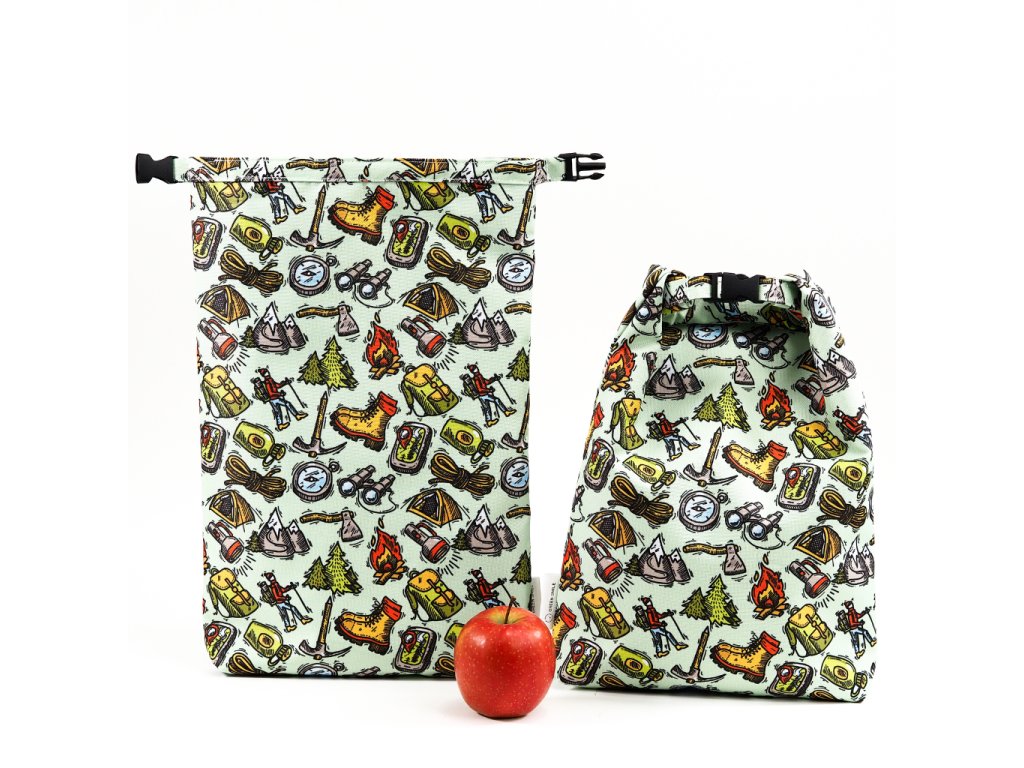 🎒Svačinový vak je vyroben ze dvou vrstev funkčního materiálu, který chrání obsah před vlhkostí. To z něj dělá nejen skvělou volbu pro balení svačiny, ale také praktický obal na mokré plavky nebo oblečení na hory. Po použití jej jednoduše složíte a uložíte do batohu, kde nezabere téměř žádné místo.