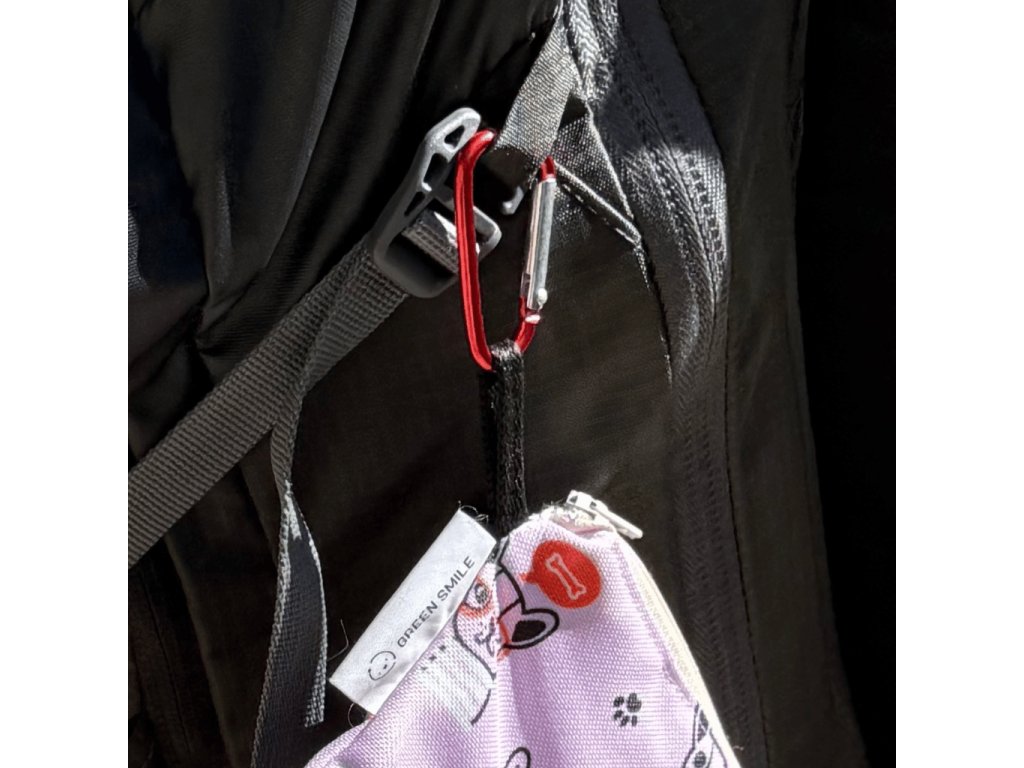 Je vybavena praktickým zipem, který bezpečně udrží vaše oříšky, sušené ovoce či sušenky uvnitř, a poutkem pro karabinu, díky kterému ji snadno připnete na batoh, opasek nebo tašku.
