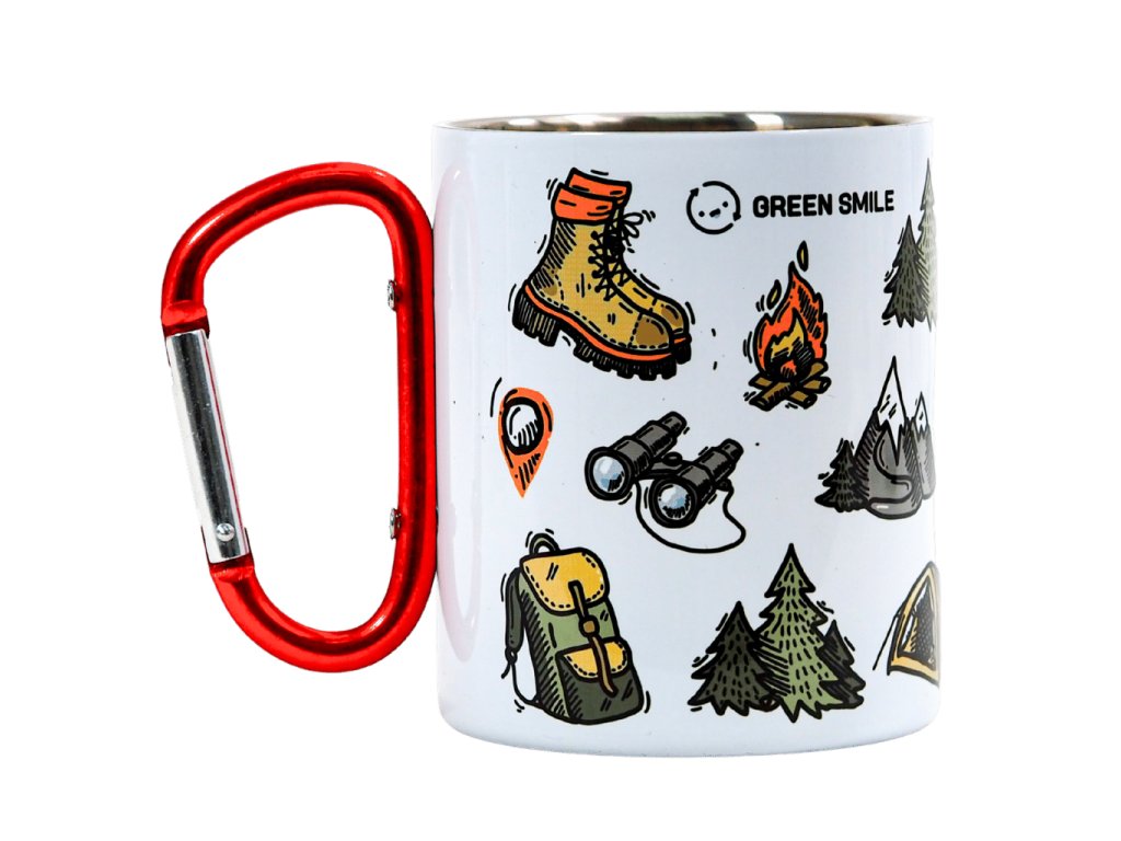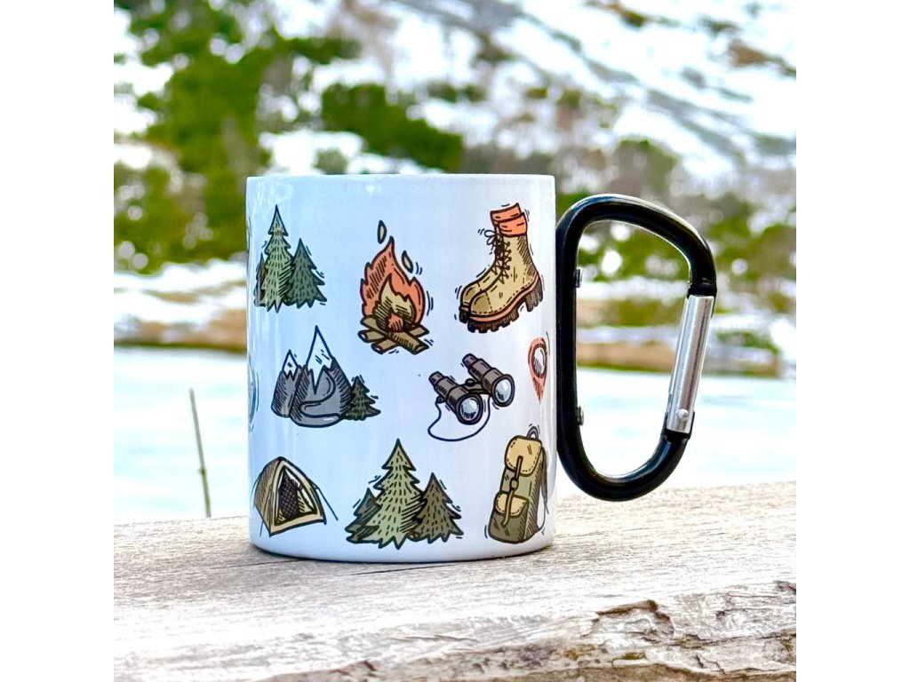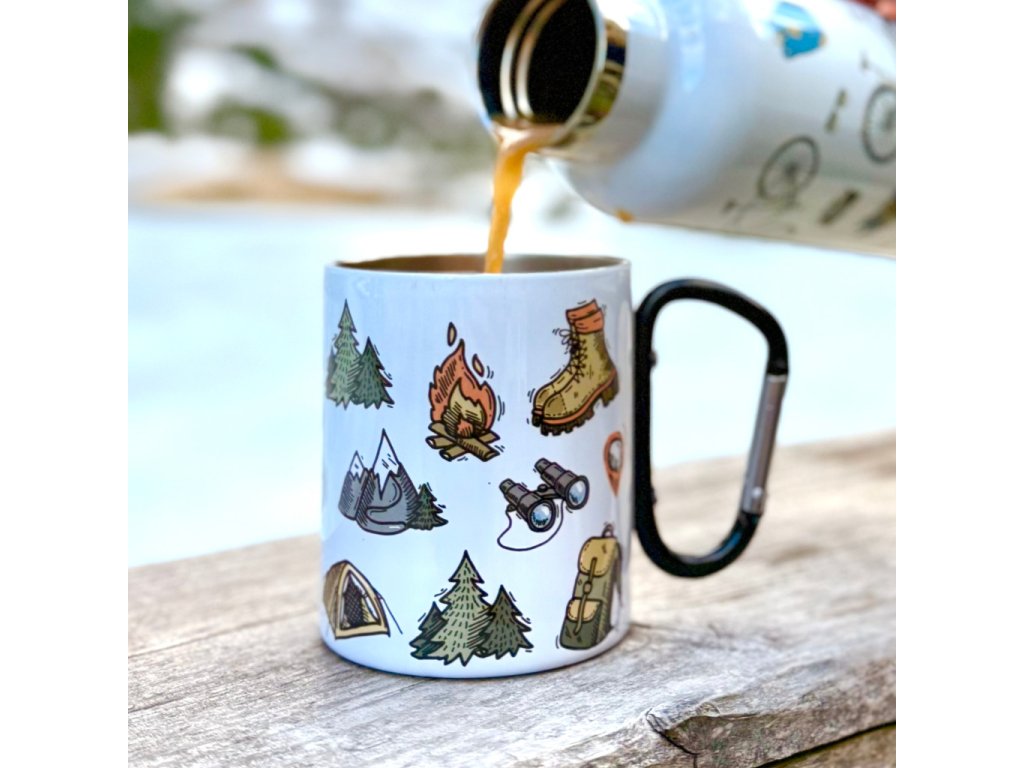 Termo hrnek s karabinou s hiking motivem.