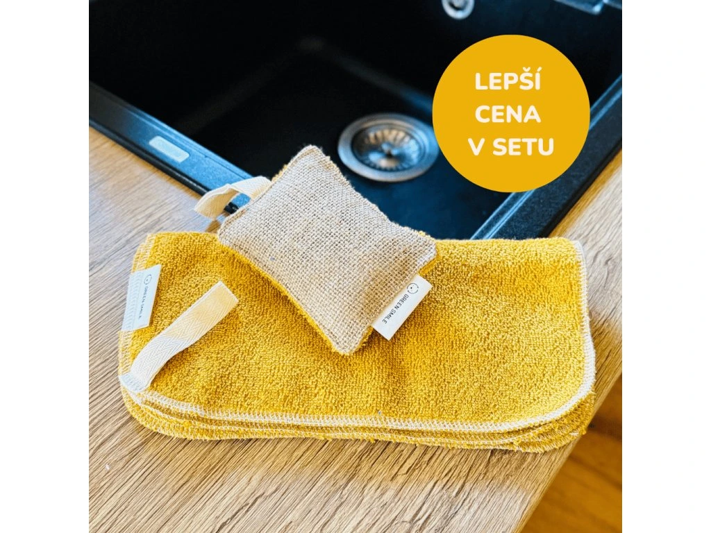 Objevte kouzlo udržitelného úklidu s naším žlutým setem do kuchyně, který je nejen krásný na pohled, ale i praktický pro každodenní použití. Kombinace pratelné houbičky na nádobí a 2 savých hadříků tvoří ideální základ pro každou ekologickou a zero waste domácnost.